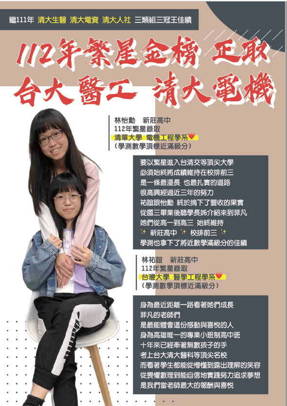 不管是雄中雄女 新莊高中 還是三民中附 道明 等的學長姊