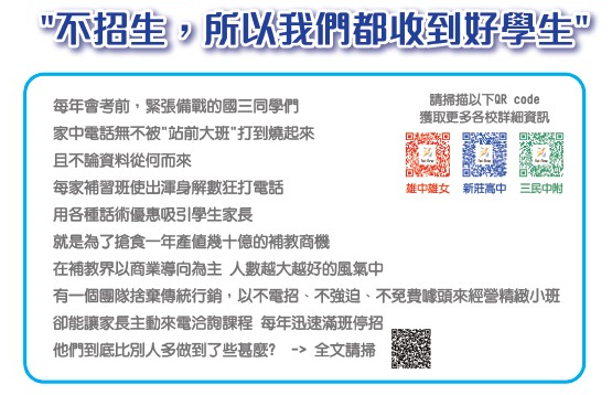 不招生 , 所以我們才都收到好學生 (全文連結)